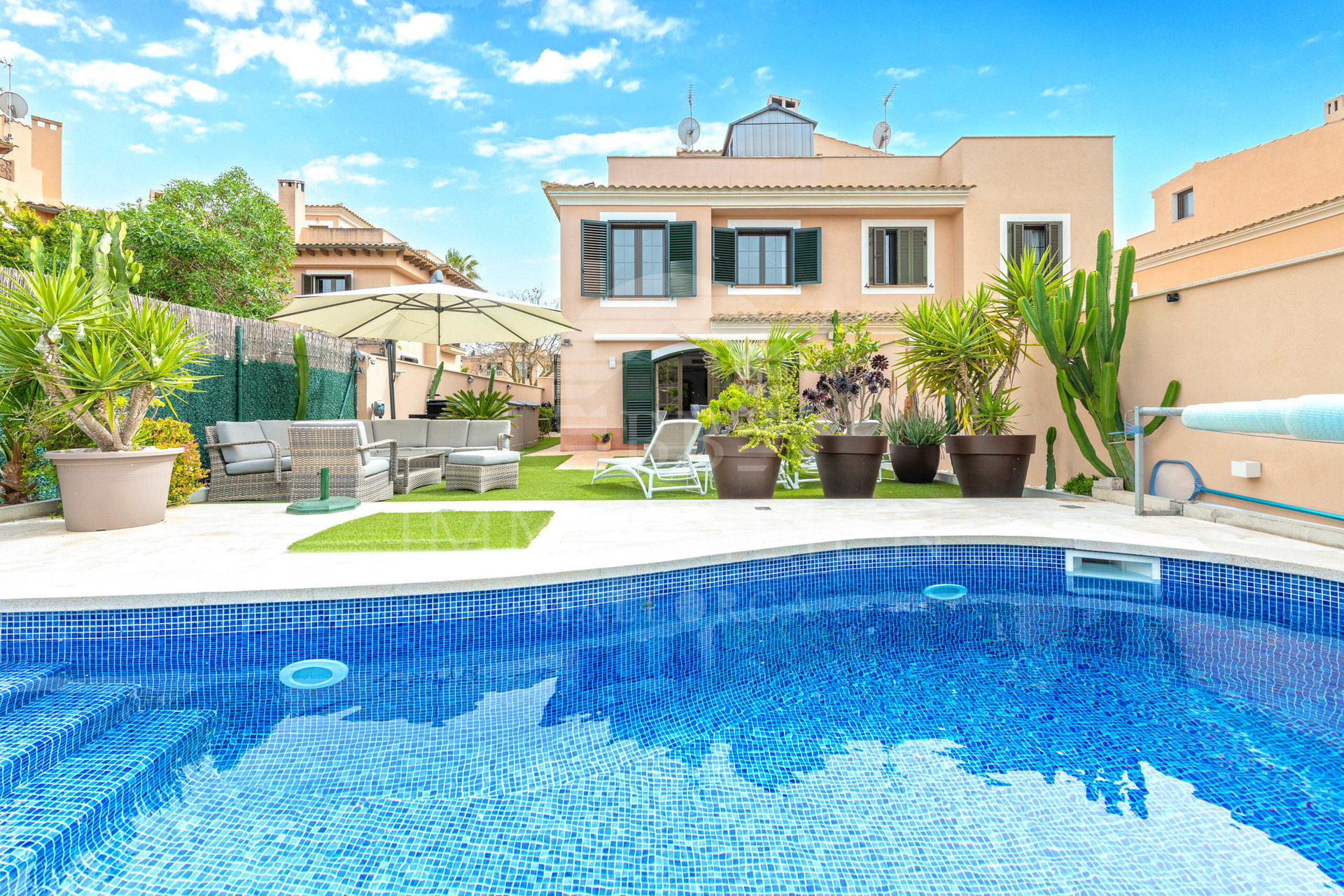 Stilvolles Doppelhaus mit Pool & Garten – Carport